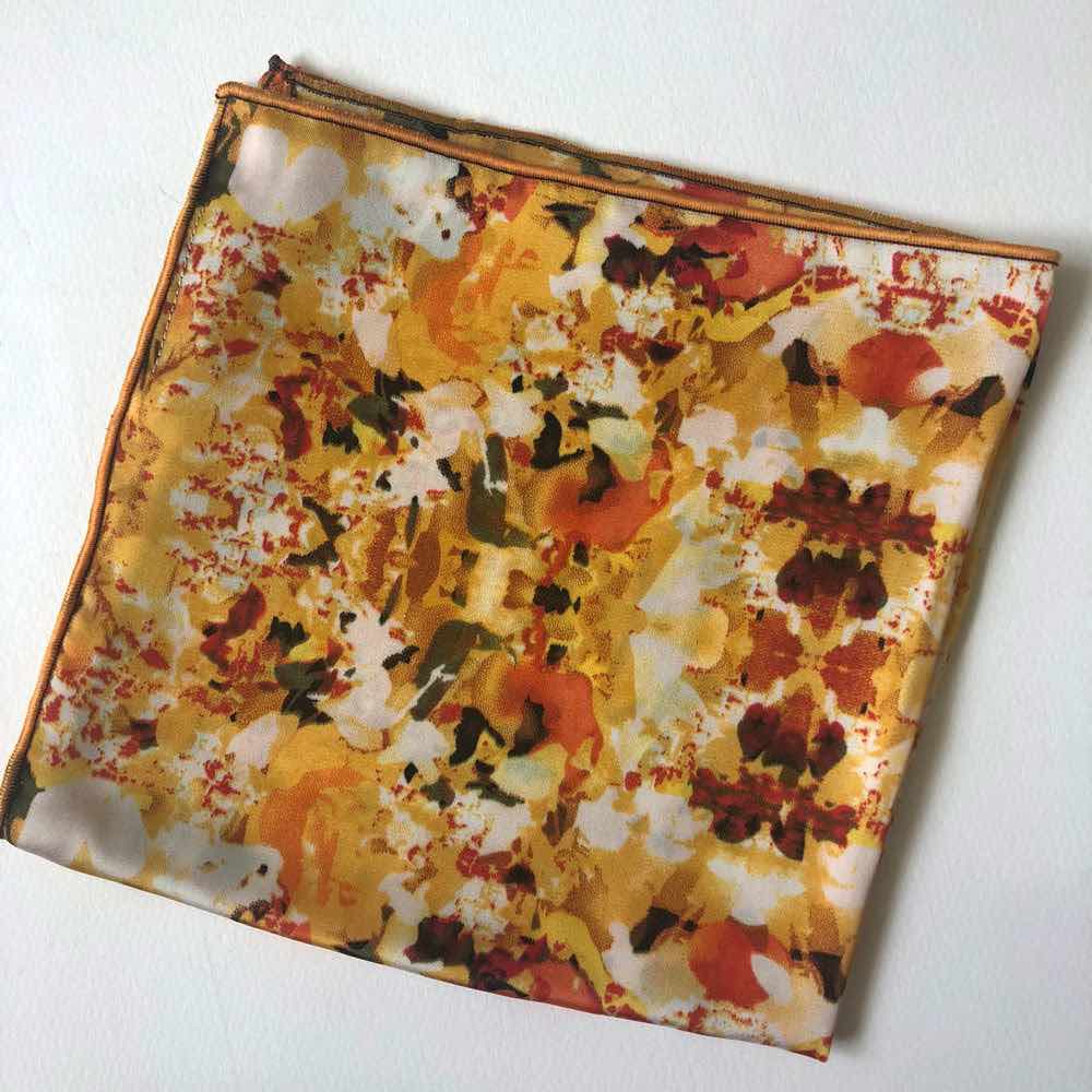 Lenço de Bolso LLPocket em tons Amarelos com apontamentos Brancos, Laranja entre outras cores. Ideal para todos os fatos.